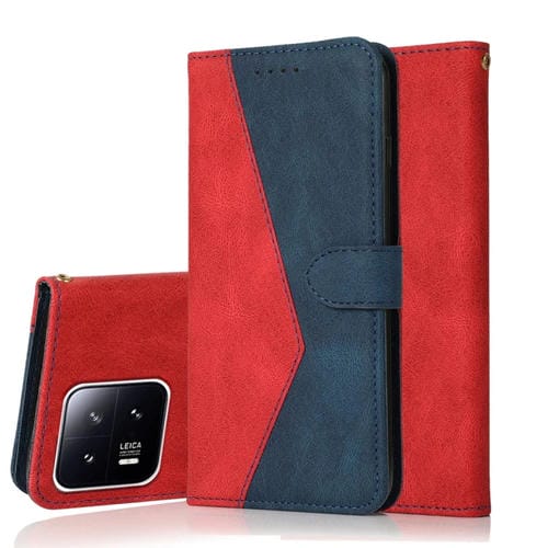Para Xiaomi 13 Estuche de Teléfono de Cuero con Costuras de Dos Colores (Rojo Azul)