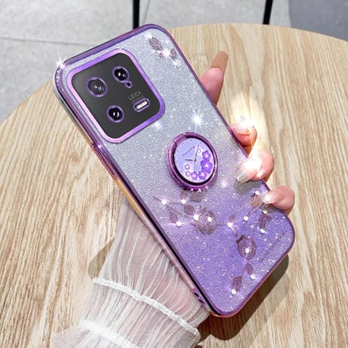 Para Xiaomi 13 Gradient Glitter Immortal Flower Ring Funda para Teléfono con Todo Incluido (Púrpura)