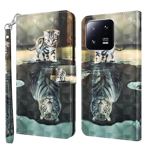 Para Xiaomi 13 Pro 3D Patrón de Pintura Flip Funda de Cuero para Teléfono (Tigre de Gato)