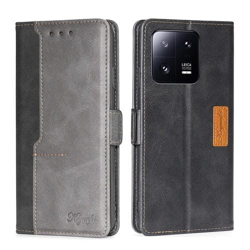 Para Xiaomi 13 Pro Caja de Teléfono de Cuero con Hebilla Lateral de Color de Contraste (Negro + Gris)