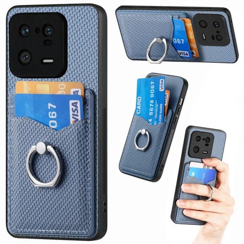 Para Xiaomi 13 Pro Carbon Fiber Card Wallet Ring Holder Phone Case (Azul)