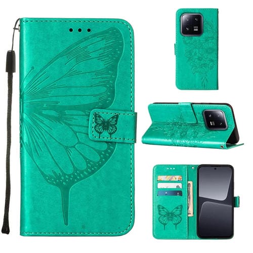 Para Xiaomi 13 Pro Estuche para Teléfono de Cuero con Mariposa En Relieve (Verde)