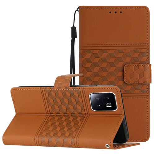 Para Xiaomi 13 Pro Estuche para Teléfono de Cuero con Tacto de Piel En Relieve con Cordón (Marrón)