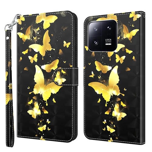 Para Xiaomi 13 Pro Patrón de Pintura 3D Flip Funda de Cuero para Teléfono (Mariposa Dorada)