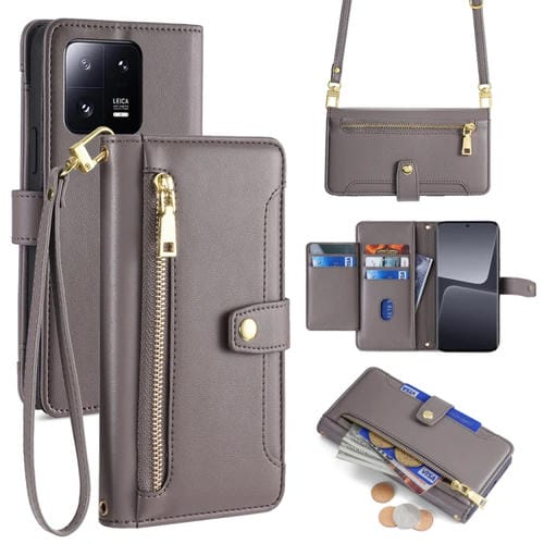 Para Xiaomi 13 Pro Sheep Texture Cross-Body Zipper Wallet Funda de Cuero para Teléfono (Gris)