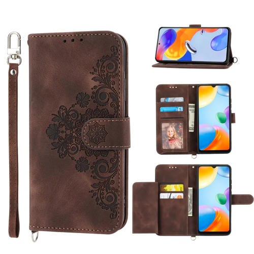 Para Xiaomi 13 Skin-Feel Flowers Funda de Cuero con Billetera En Relieve para Teléfono (Marrón)