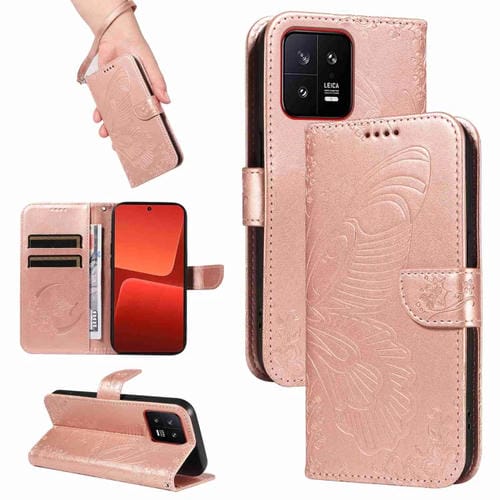Para Xiaomi 13 Swallowtail Butterfly Funda de Cuero En Relieve para Teléfono (Oro Rosa)
