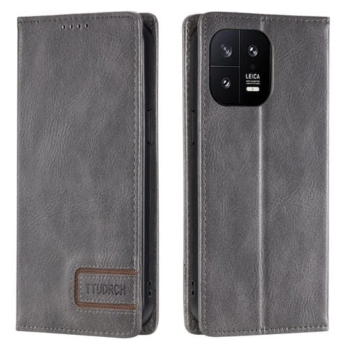 Para Xiaomi 13 Ttudrch Rfid Funda de Cuero con Textura Retro (Gris)