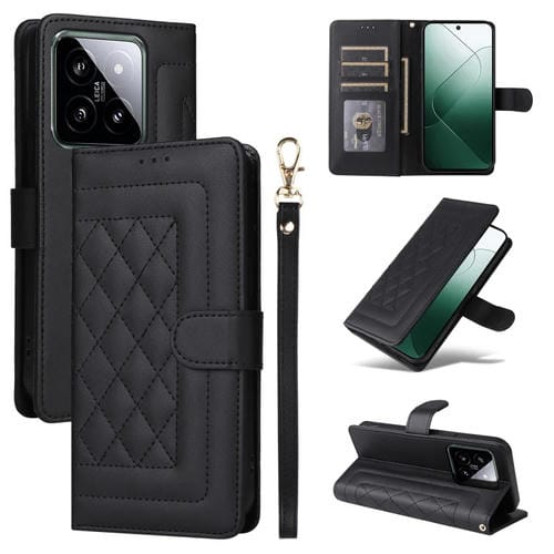 Para Xiaomi 14 5G Diamond Lattice Funda De Cuero Con Tapa Para Teléfono (Negro)