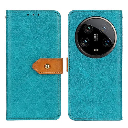 Para Xiaomi 14 Funda De Teléfono De Cuero Con Relieve Floral Ultra Europeo (Azul)