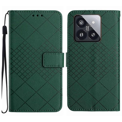 Para Xiaomi 14 Funda De Teléfono De Cuero Con Textura De Rejilla Rómbica (Verde)
