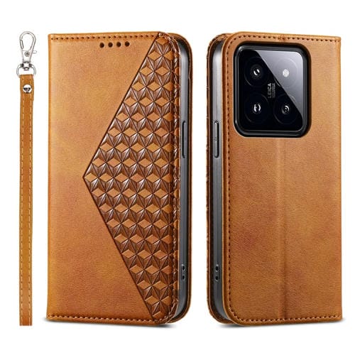 Para Xiaomi 14 Pro Cubic Grid Calf Texture Funda De Cuero Magnética Para Teléfono (Amarillo)