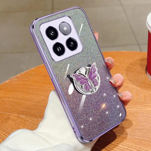 Para Xiaomi 14 Pro Estuche Para Teléfono De Tpu Con Soporte De Mariposa Con Brillo Degradado Plateado (Púrpura)