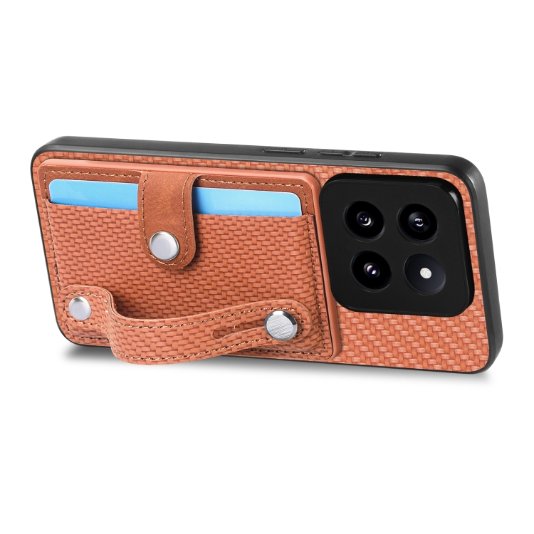 Para Xiaomi 14 Pro Muñequera Kickstand Card Wallet Funda Trasera Para Teléfono Con Cuchillo Para Herramientas (Marrón)