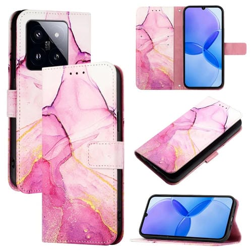Para Xiaomi 14 Pro Pt003 Funda De Teléfono De Cuero Con Tapa Con Patrón De Mármol (Rosa, Morado Y Dorado)