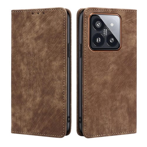 Para Xiaomi 14 Pro Rfid Cepillo Antirrobo Funda De Cuero Magnética Para Teléfono (Marrón)