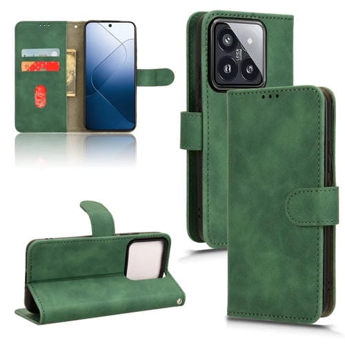 Para Xiaomi 14 Pro Skin Feel Funda De Teléfono De Cuero Con Tapa Magnética (Verde)