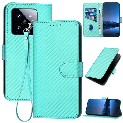 Para Xiaomi 14 Pro Yx0070 Funda De Cuero Con Hebilla De Fibra De Carbono Y Cordón (Azul Claro)