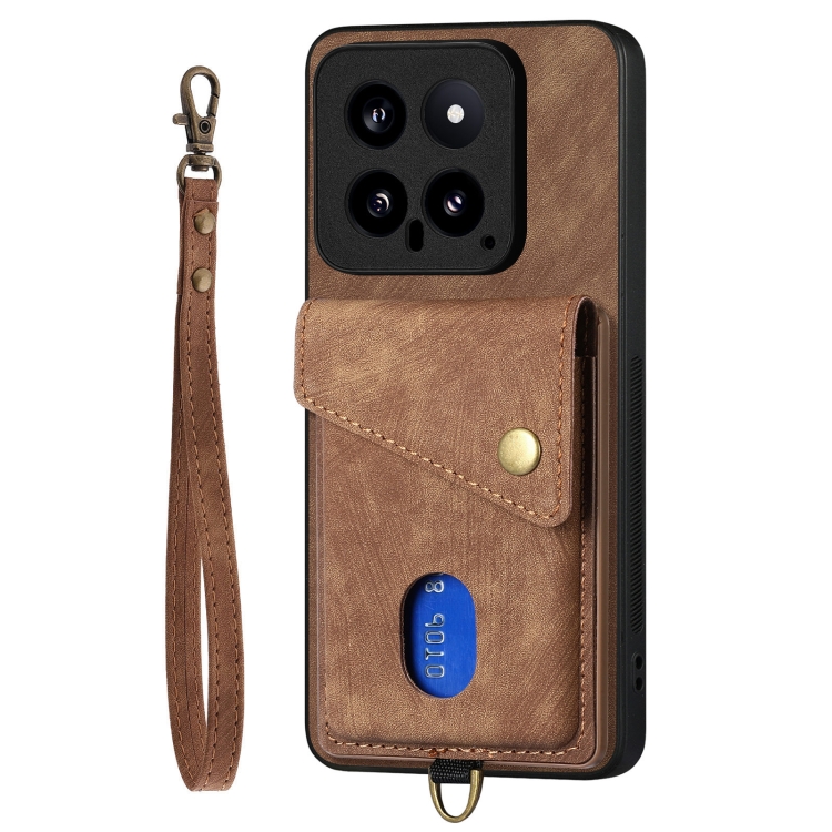 Para Xiaomi 14 Retro Card Wallet Fold Funda De Cuero Para Teléfono Con Correa (Marrón)