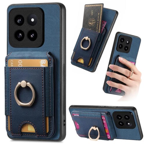 Para Xiaomi 14 Retro Splitable Magnetic Stand Card Bag Funda De Cuero Para Teléfono (Azul)