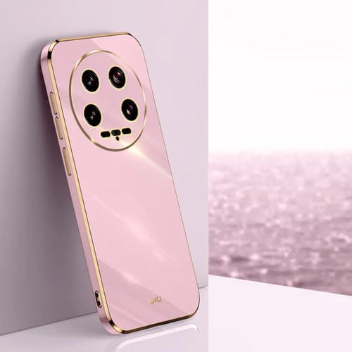 Para Xiaomi 14 Ultra 5G Xinli Caja De Teléfono De Tpu Con Borde Dorado Recto 6D (Púrpura Cereza)
