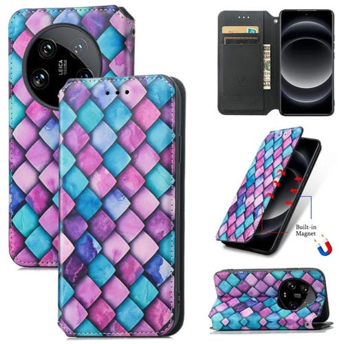 Para Xiaomi 14 Ultra Caseneo Funda De Cuero Magnética Colorida Para Teléfono (Escamas Moradas)