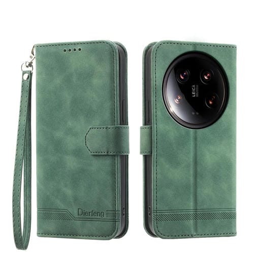 Para Xiaomi 14 Ultra Dierfeng Dream Line Tpu + Funda Para Teléfono De Cuero Pu (Verde)