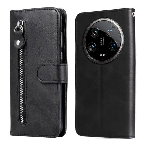 Para Xiaomi 14 Ultra Fashion Becerro Textura Cremallera Funda De Cuero Para Teléfono (Negro)