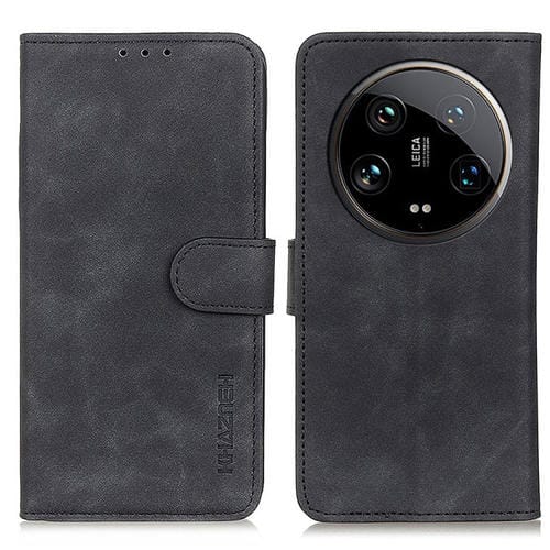 Para Xiaomi 14 Ultra Khazneh Funda De Teléfono De Cuero Con Tapa Con Textura Retro (Negro)