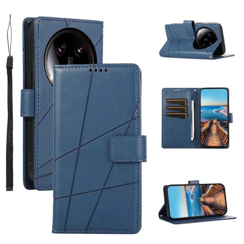 Para Xiaomi 14 Ultra Pu Funda Para Teléfono Con Textura De Cuero Genuino En Relieve (Azul)