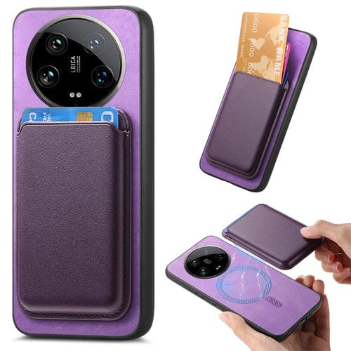 Para Xiaomi 14 Ultra Retro Magsafe Card Bag Pu Funda Para Teléfono Con Contraportada (Púrpura)