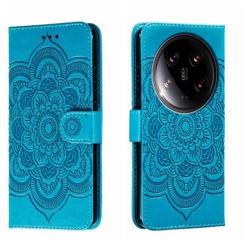 Para Xiaomi 14 Ultra Sun Mandala Funda De Cuero Para Teléfono Con Patrón En Relieve (Azul)
