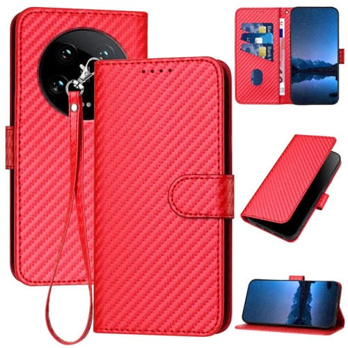 Para Xiaomi 14 Ultra Yx0070 Funda De Cuero Con Hebilla De Fibra De Carbono Y Cordón (Rojo)