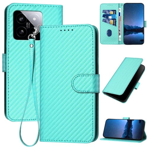 Para Xiaomi 14 Yx0070 Funda De Cuero Con Hebilla De Fibra De Carbono Y Cordón (Azul Claro)