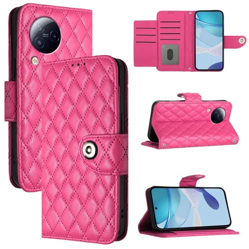 Para Xiaomi Civi 3 Funda de Cuero con Tapa con Textura Rómbica y Cordón (Rojo Rosa)