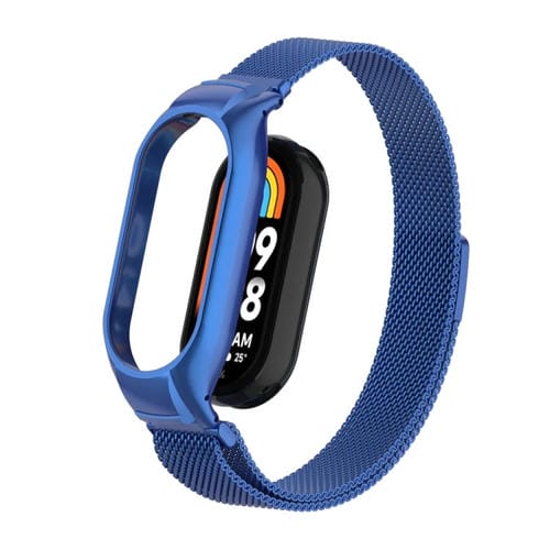Caja de Metal Integrada para Xiaomi Mi Band 8 + Banda Magnética Milanesa (Azul)