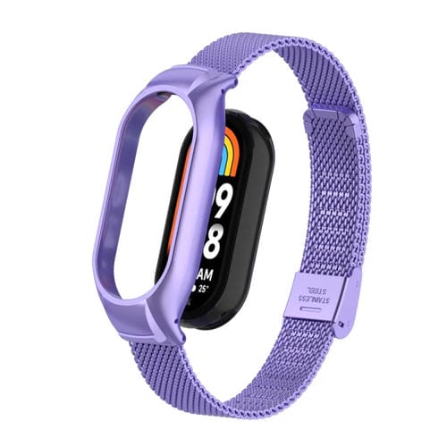 Caja de Metal Integrada + Correa con Hebilla de Malla de Acero para Xiaomi Mi Band 8 (Púrpura)