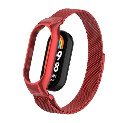 Estuche de Metal Integrado + Banda Magnética Milanesa para Xiaomi Mi Band 8 (Rojo)
