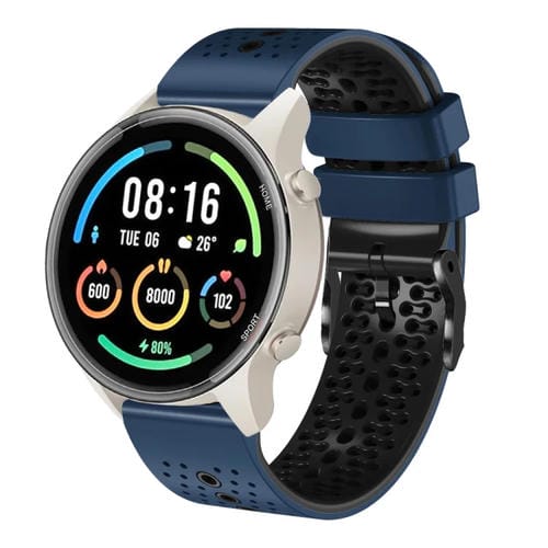 Banda de Reloj Xiaomi Mi Watch Sport 22mm Silicona Perforada Dos Colores (Azul Medianoche + Negro)