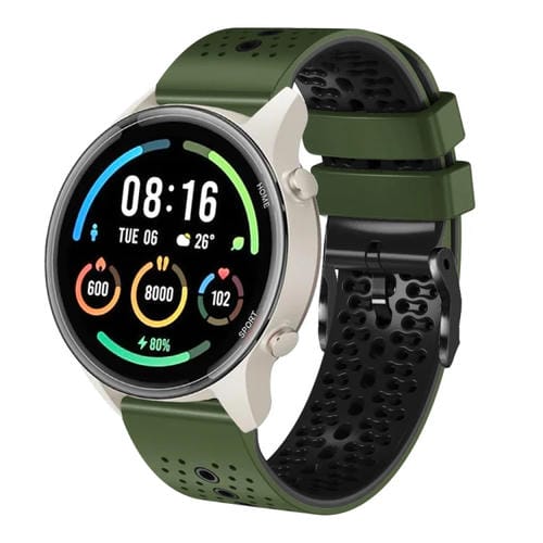 Banda de Reloj Xiaomi Mi Watch Sport 22mm Silicona Perforada Dos Colores (Verde Militar + Negro)