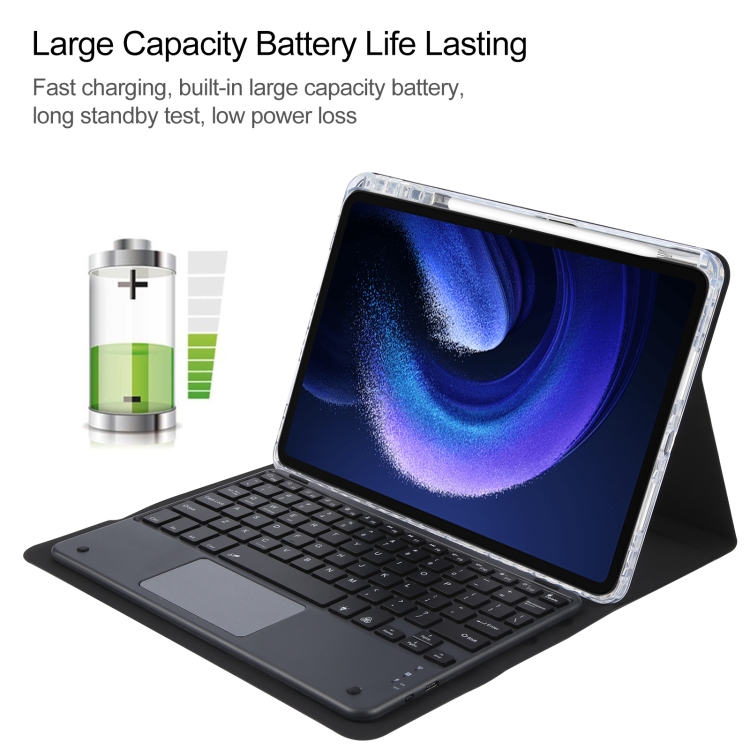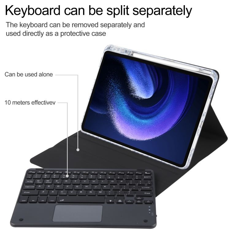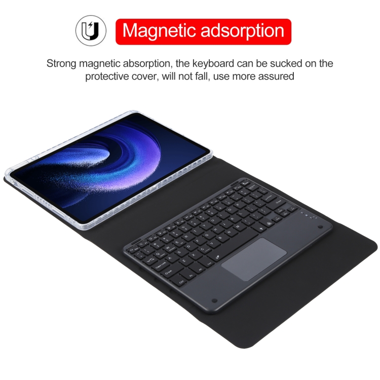 - 1x Teclado Bluetooth para Xiaomi Pad 6 con Botón Cuadrado, Soporte Giratorio y Funda de Cuero con Panel Táctil (Negro)