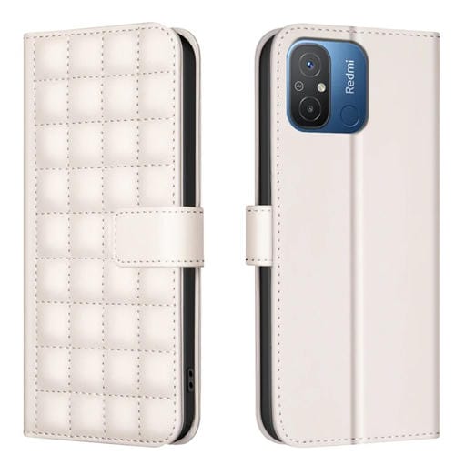 Para Xiaomi Poco C55 / Redmi 12C Funda de Cuero para Teléfono con Textura Cuadrada (Beige)