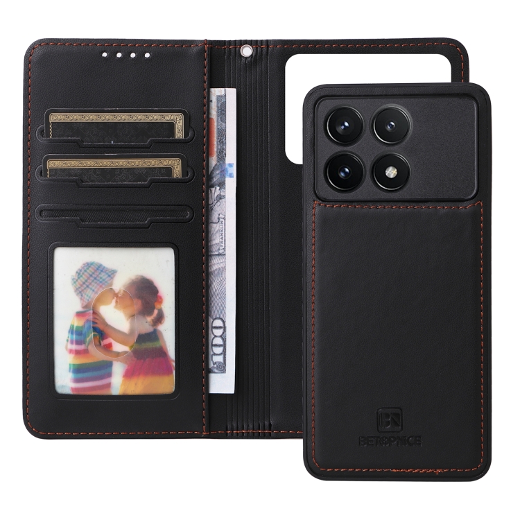 Para Xiaomi Poco F6 Pro Betopnice Bn-005 2 En 1 Funda de Teléfono de Cuero Genuino Desmontable (Negro)