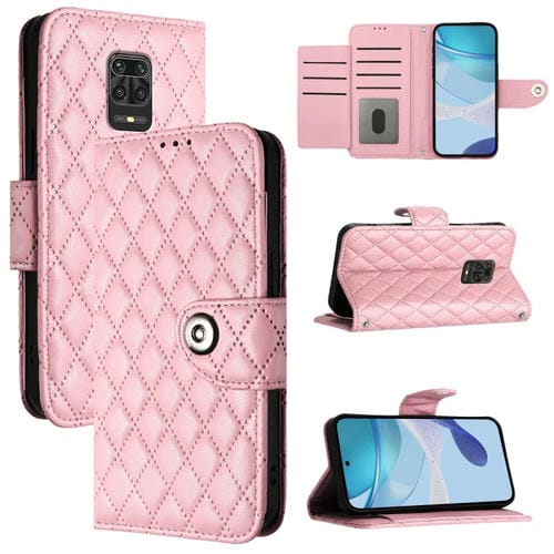 Para Xiaomi Poco M2 Pro Funda de Cuero con Tapa con Textura Romboidal y Cordón (Rosa)