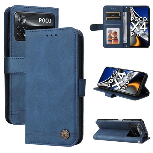 Para Xiaomi Poco X4 PRO 5G Siente la piel del árbol de metal de la piel del árbol de la vida (azul)