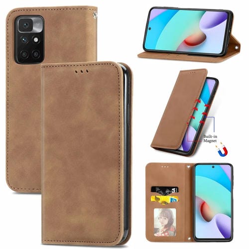 Para Xiaomi Rdemi 10 Retro Piel Siente Negocio Magnético Horizontal Flip Funda de Cuero con Soporte y Ranuras para Tarjetas y Marco de Fotografía (BRWon)