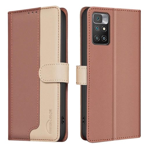 Para Xiaomi Redmi 10 2022 / Note 11 4G Funda de Cuero Antirrobo Rfid a Juego de Colores (Marrón)