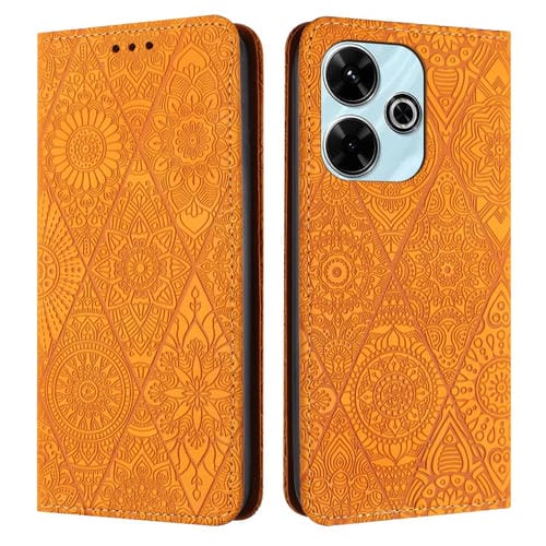 Para Xiaomi Redmi 13 4G Funda de Teléfono de Cuero con Adsorción En Relieve Étnico (Amarillo)