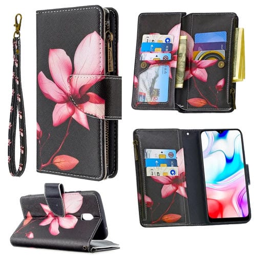 Para Xiaomi Redmi 8A Patrón de Dibujo de Colores Cremallera Funda de Cuero con Tapa Horizontal con Soporte y Ranuras para Tarjetas y Billetera
