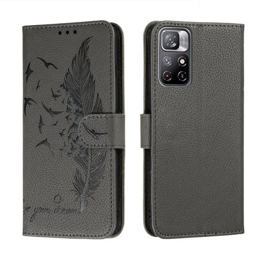 Para Xiaomi Redmi Note 11 Patrón de Plumas Litchi Texture Teléfono de Cuero con Titular y Tragamonedas y Billetera (Gris)